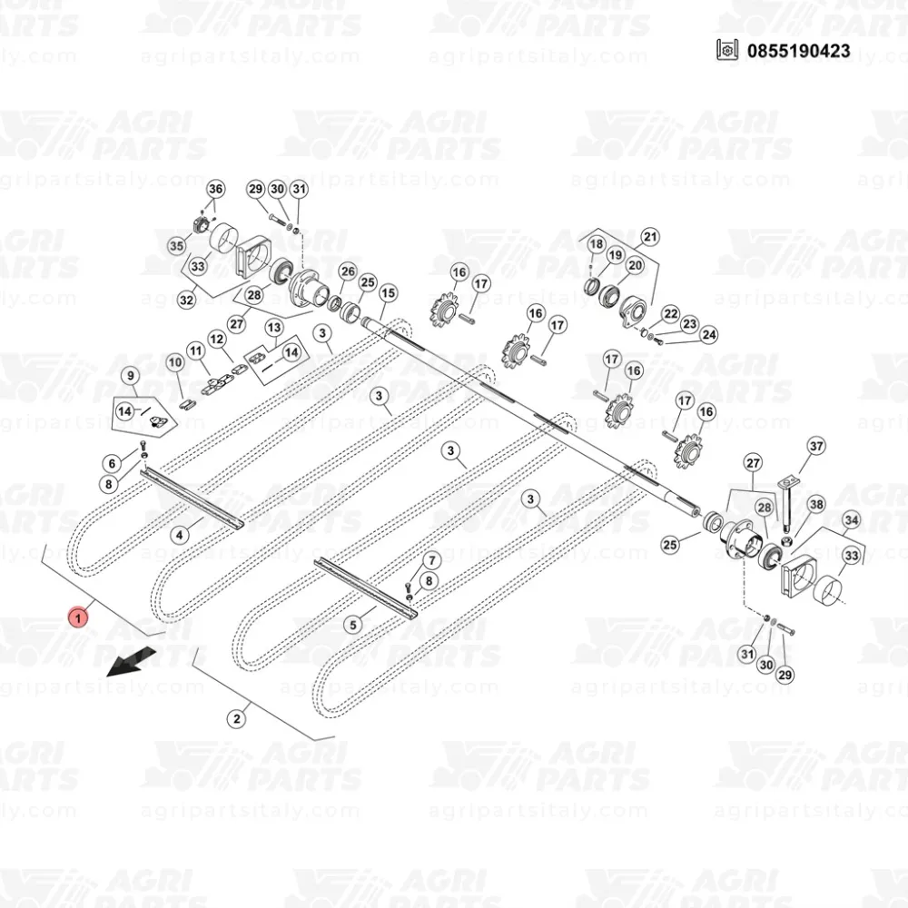 Komplette futterelevatorkette bestehend aus 2 ketten und 18 verschraubten schienen für mähdrescher Claas Lexion. ACHSABSTAND 577 mm