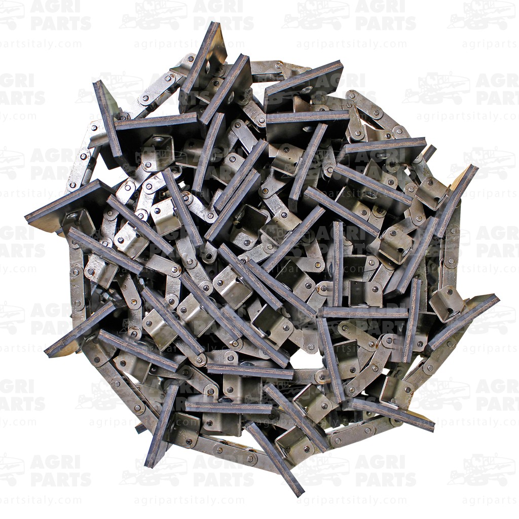 Komplette elevatorkette mit verschraubten paddeln und 38 anbauteilen für sauberen kornelevator an Case-mähdreschern.