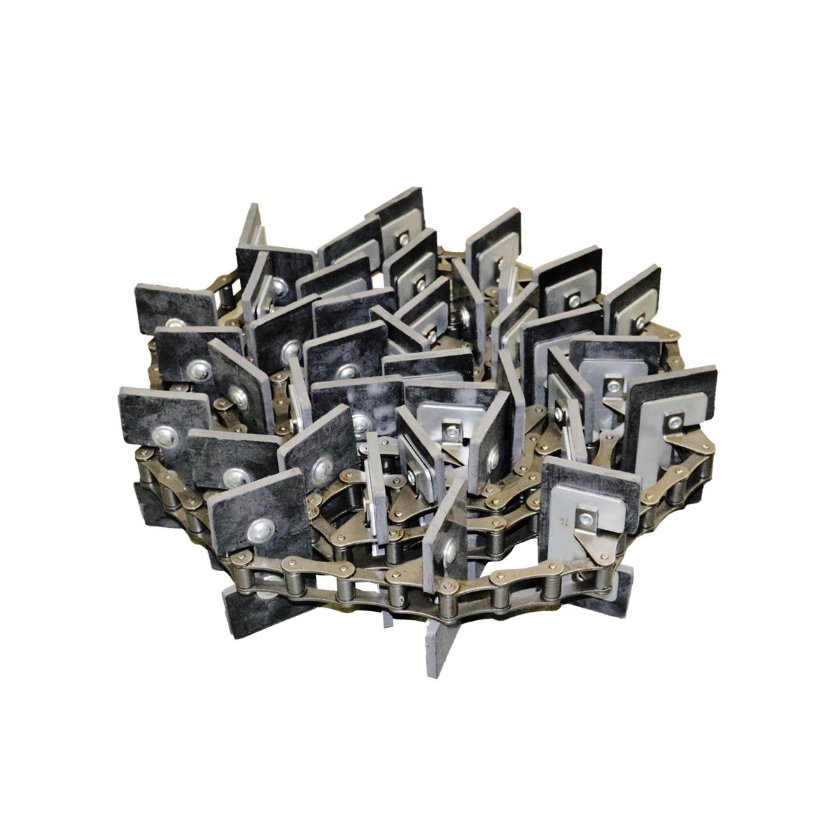 Cadena elevadora completa con alabeas ensambladas con tuercas y pernos con 40 enganches para cosechadoras AGCO, código OEM 300112143 (18AP003901). Montado en Italia por Agri Parts, 100% intercambiable con el original.