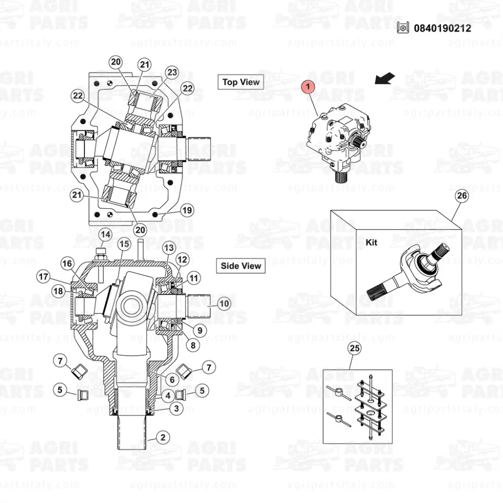 Les principaux composants (boîte, couvercle, arbre excentrique, boîte oscillante) sont fabriqués en Italie par Agri Parts