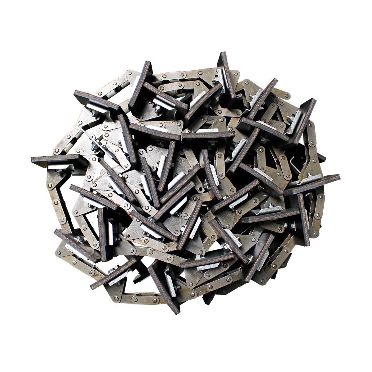 Catena completa con palette inbullonate e con 25 attacchi per l'elevatore della granella pulita su mietitrebbie Claas Mega, Medion e Tucano. Le palette sono in gomma telata (convenzionali) e la catena è migliorata rispetto all'originale. CROSS REF: 6015960