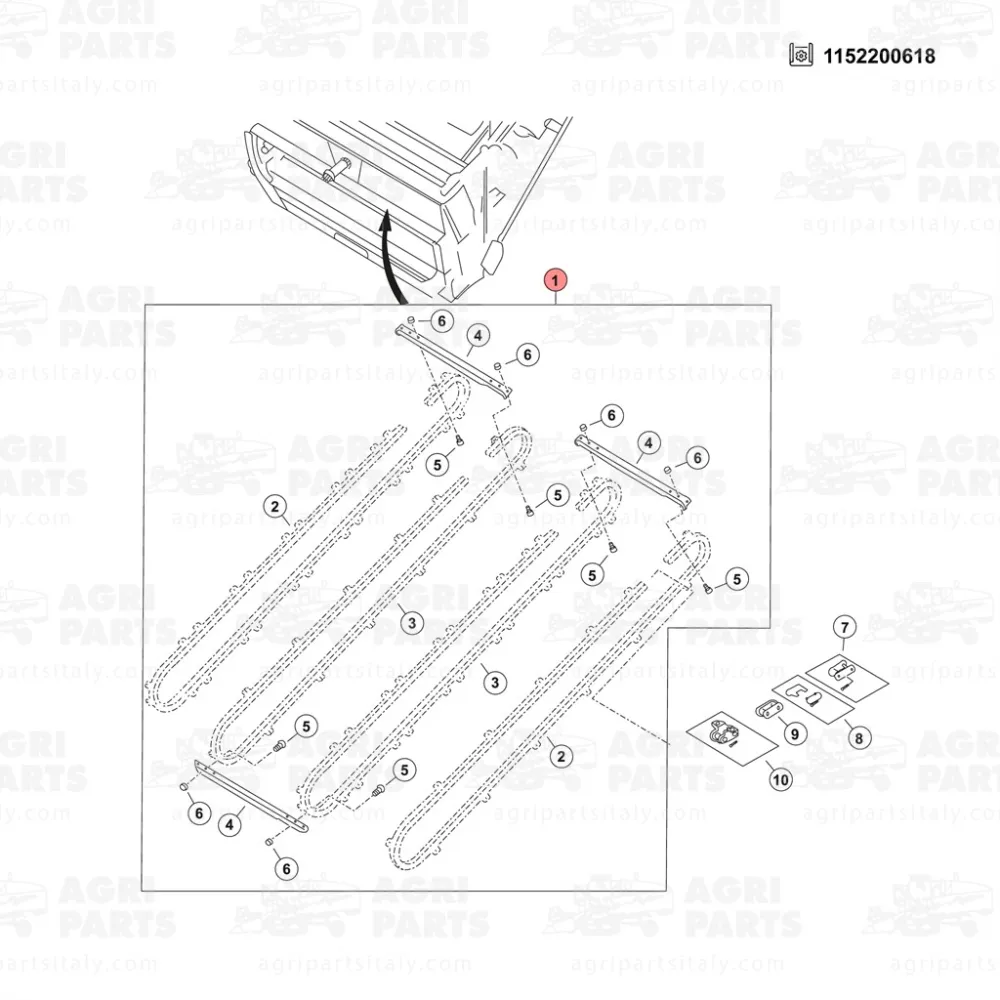 Catena canale alimentazione completa con 4 catene e 51 spranghe imbullonate per mietitrebbie John Deere. INTERASSE 493 mm + 493 mm + 493 mm